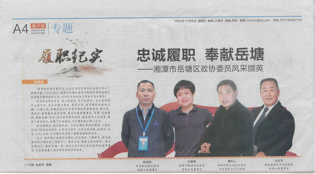 近日,湘声报记者前往岳塘区,走近委员、了解委员,真切地感受到岳塘政协人围绕中心、服务大局、履职为民的情怀。滴水折射光芒,撷取沧海一粟,通过记录4位区政协委员的优秀事迹,以此展现整个委员群体的特质和风采。